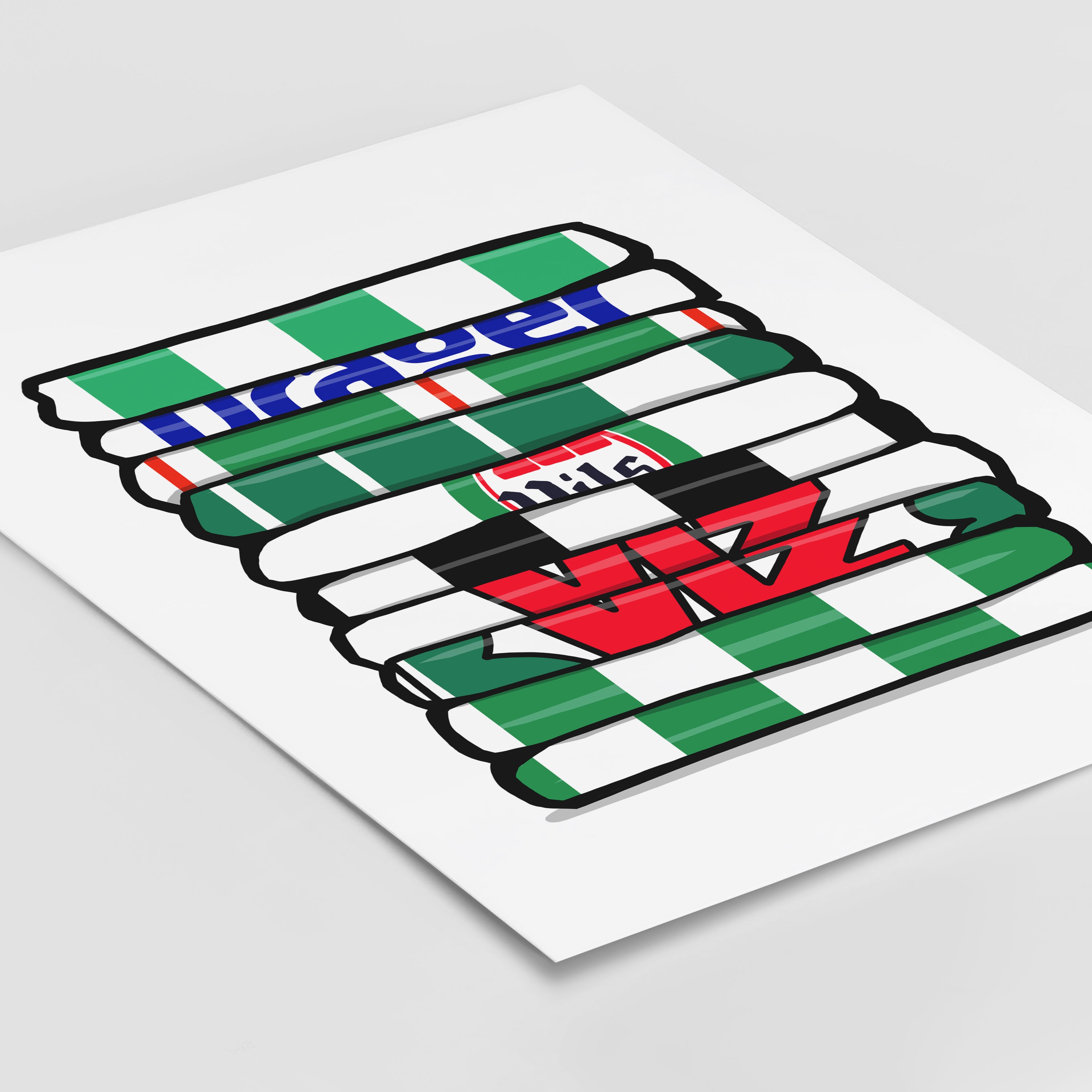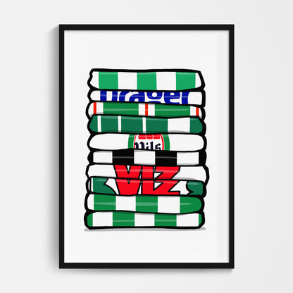 Original design featuring iconic classic retro football shirts on a quality poster.