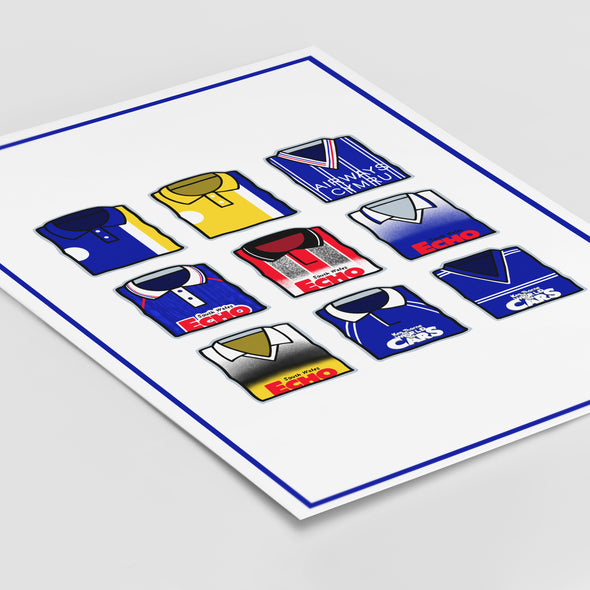 Original design featuring iconic classic retro football shirts on a quality poster.