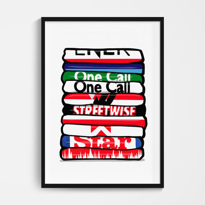 Original design featuring iconic classic retro football shirts on a quality poster.