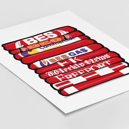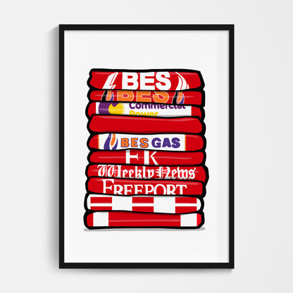 Original design featuring iconic classic retro football shirts on a quality poster.