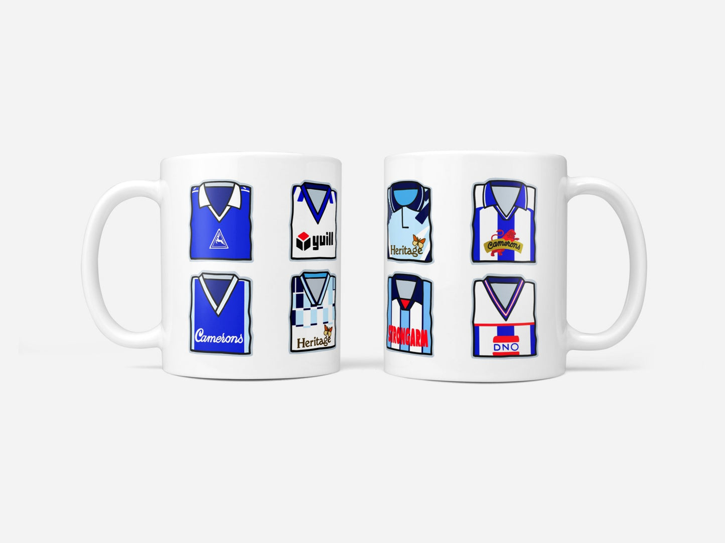 Iconic classic retro football shirts on a quality 11oz ceramic mug.