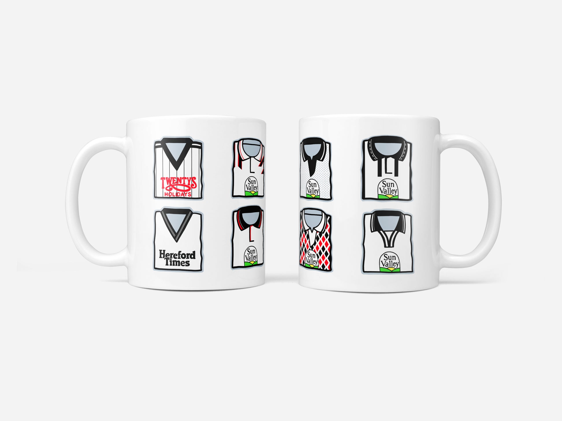 Iconic classic retro football shirts on a quality 11oz ceramic mug.