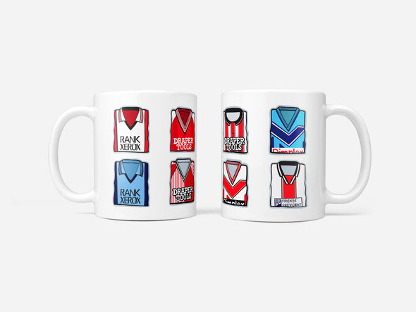 Iconic classic retro football shirts on a quality 11oz ceramic mug.